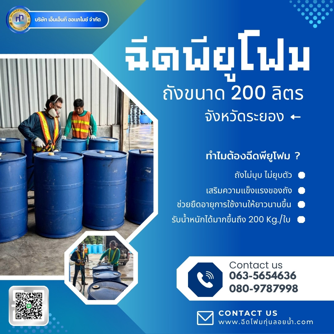 ผลงาน : ฉีดพียูโฟมใส่ทุ่นถังพลาสติก ขนาด 200 ลิตร