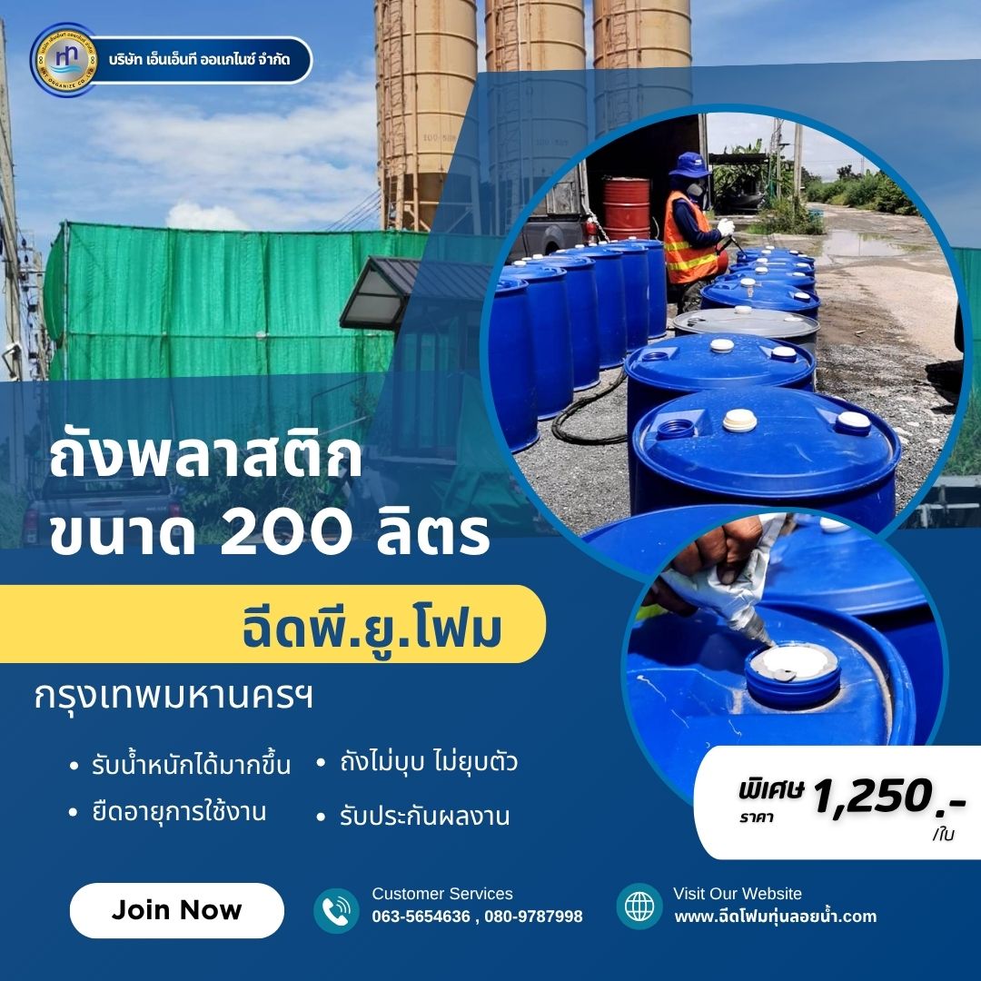 ผลงาน : ฉีดพียูโฟมใส่ทุ่นถังพลาสติก ขนาด 200 ลิตร