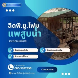พียูโฟมเป็นวัสดุที่มีคุณสมบัติ เบา แข็งแรง ไม่อมน้ำ และช่วยเพิ่มแรงลอยตัว ทำให้เหมาะอย่างยิ่งสำหรับการ ฉีดโฟมทุ่นลอยน้ำ ทั้งในงานแพสูบน้ำ แพกลางน้ำ และแพใช้งานเชิงพาณิชย์